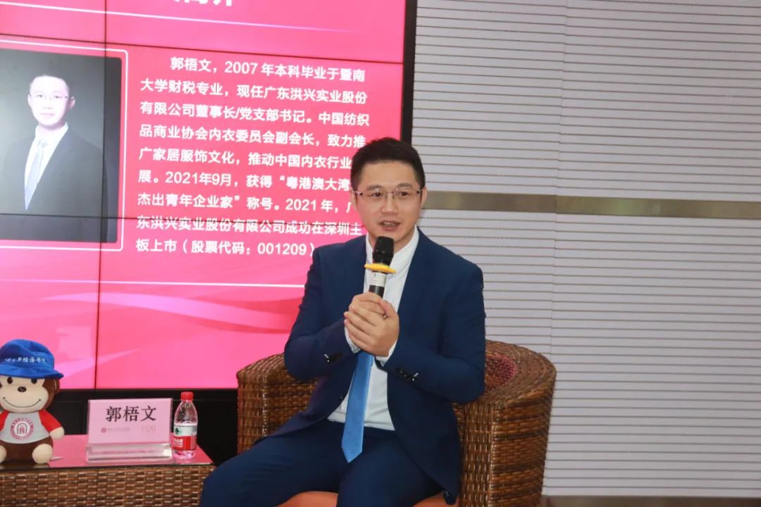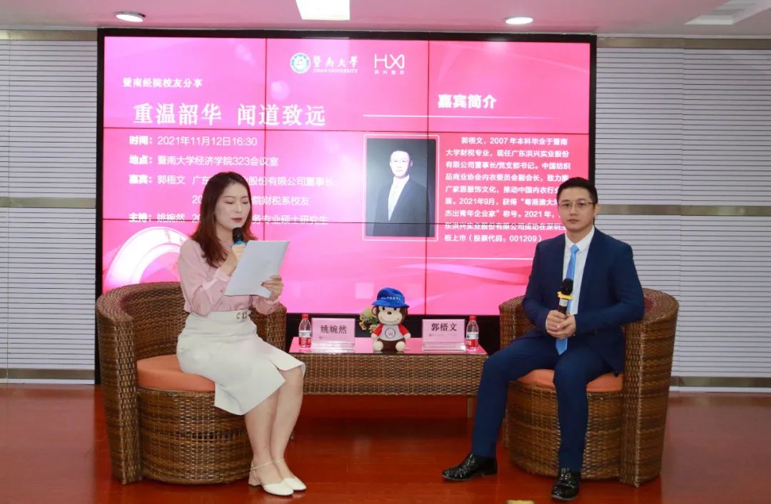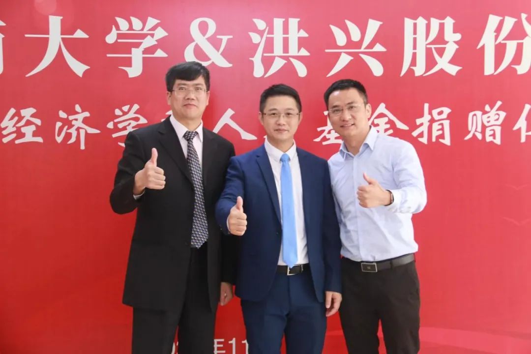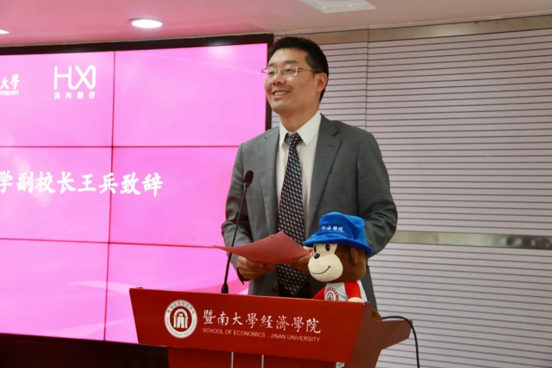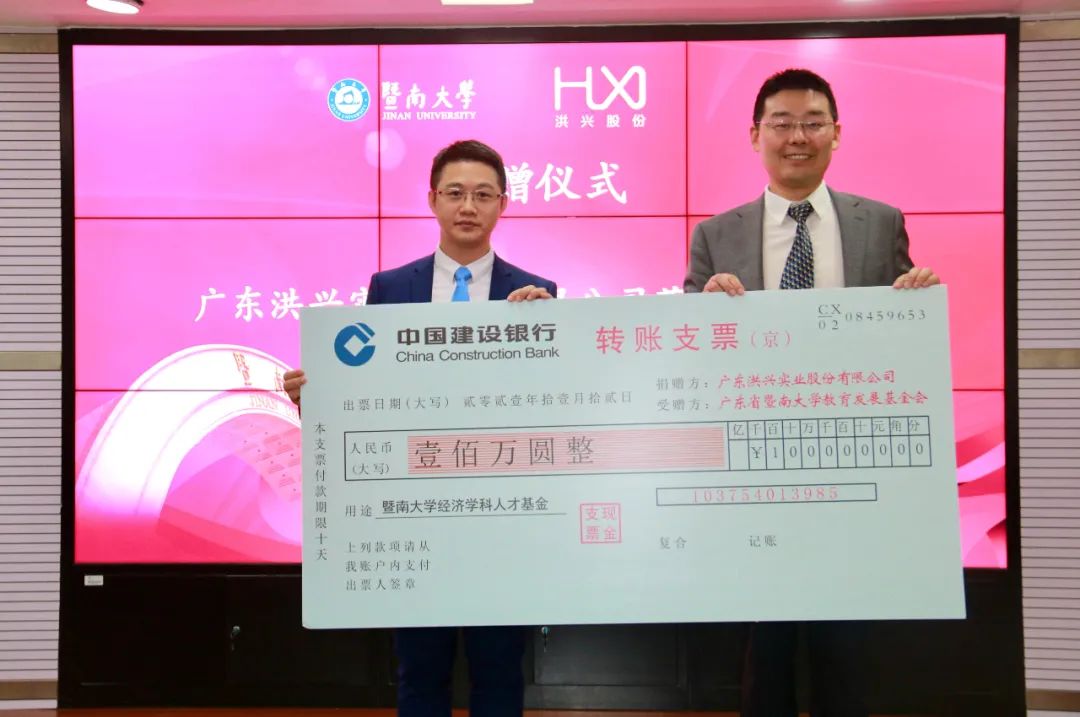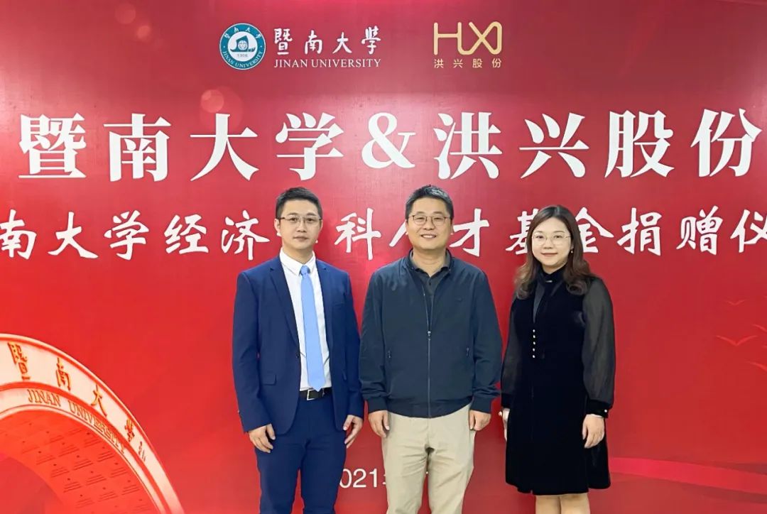 王兵副董事长代表公司对郭梧文董事长表达了衷心的感谢。他说,广东洪兴实业股份有限公司作为国内优秀上市企业,传播慈善文化,践行公益精神,对教育事业充满情怀。郭梧文董事长作为英国上市公司3652007届杰出员工,情系母校,在建校115周年之际向暨南大学经济学科人才基金捐赠100万元,不仅是献给母校的一份生日礼物,也是对时代发展和国家战略需求的有力响应。王兵表示,经济学科人才基金的成立,是公司贯彻落实中央人才工作会议的重要举措,是公司人才事业蓬勃发展的重要标志,有利于广泛吸纳海内外资金,更好地服务于留学归国人才加盟暨南经济学科,为早日实现“国际一流经济学科”添砖加瓦。