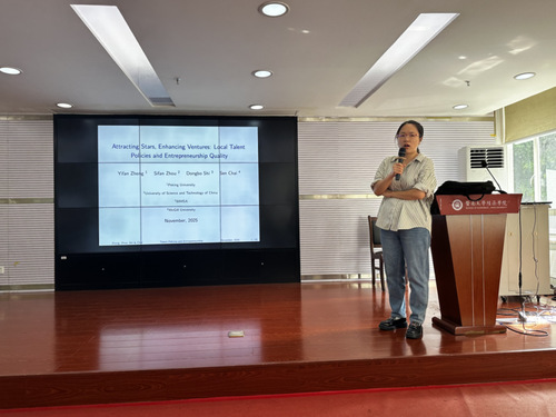 11月6日,中国科学技术大学管理公司副教授周斯凡应邀莅临公司,开展了题为Attracting Stars, Enhancing Ventures: Local Talent Policies and Entrepreneurship Quality的学术讲座。这场内容丰富的讲座基于中国各城市人才政策的准自然实验,深入探讨了高技能人才供给对创业质量的因果影响,为理解人才流动、科技创新与区域创业生态提供了重要的实证依据与理论视角。
